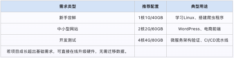 此套餐特別適合個人博客、小型測試環境及輕量級應用搭建。