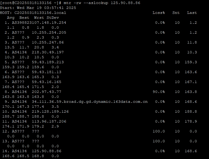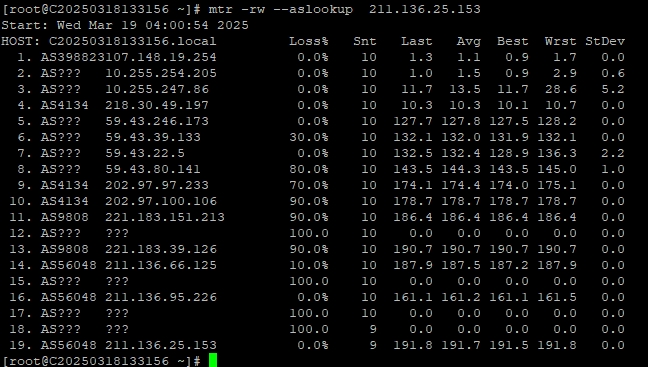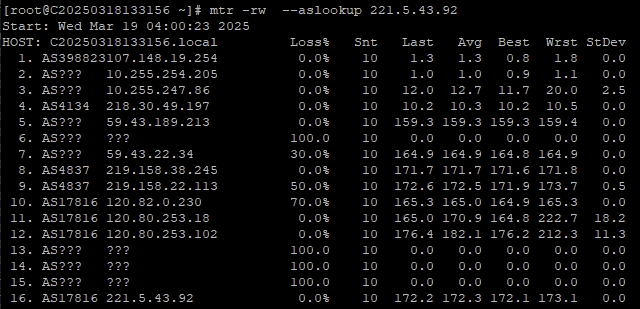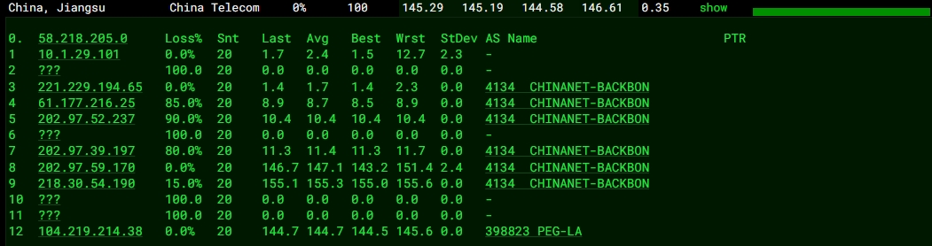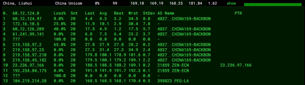 3.3.1 ping.pe 國內聯通節點去程 MTR 如下圖