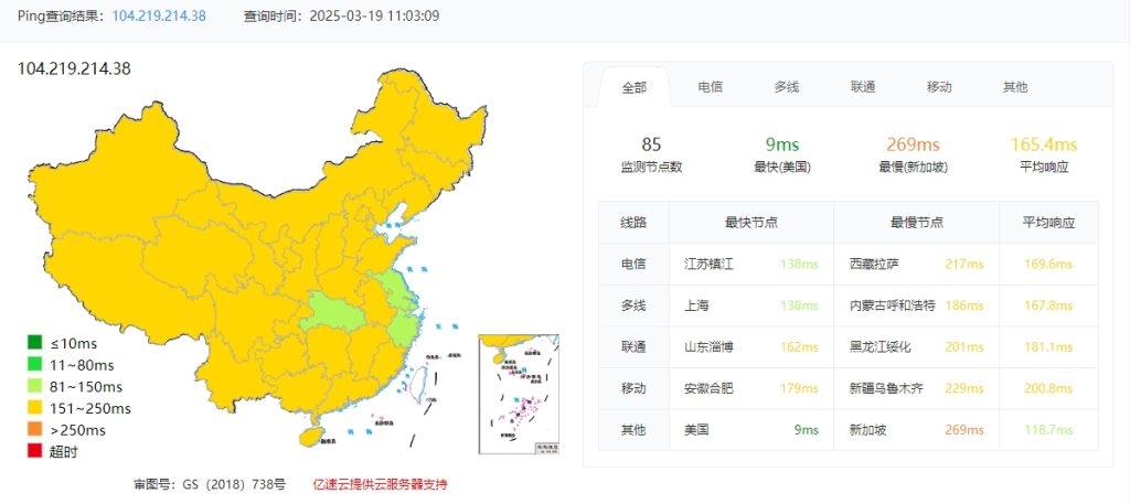 3.3 itdog 國內多點聯通 Ping 如下圖
