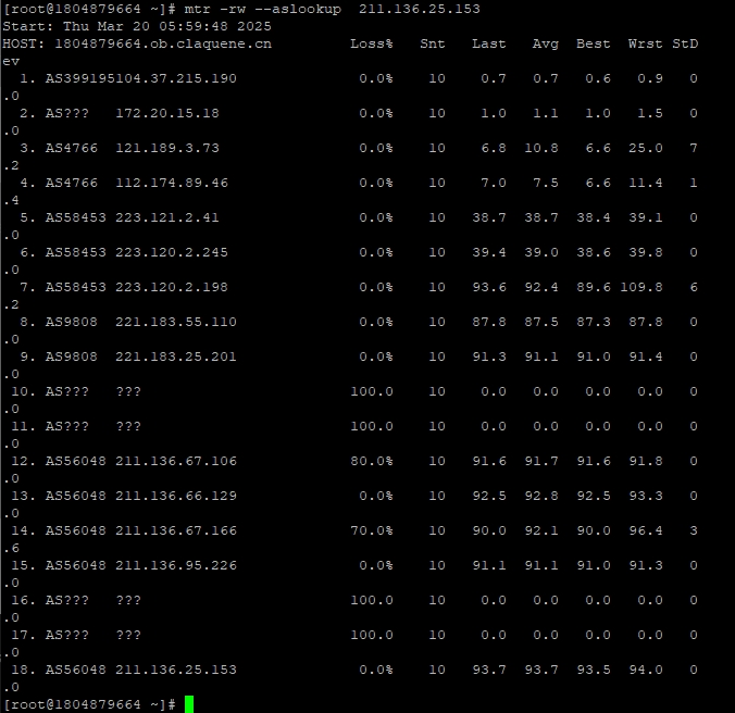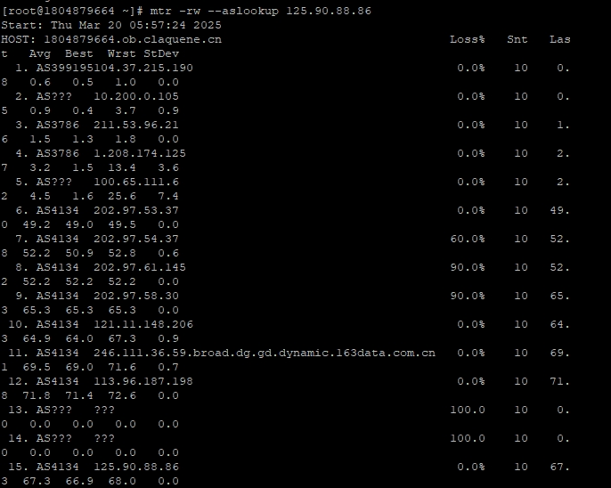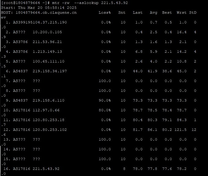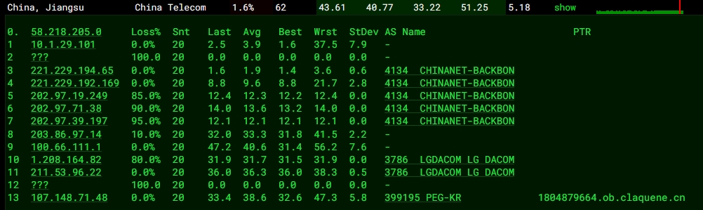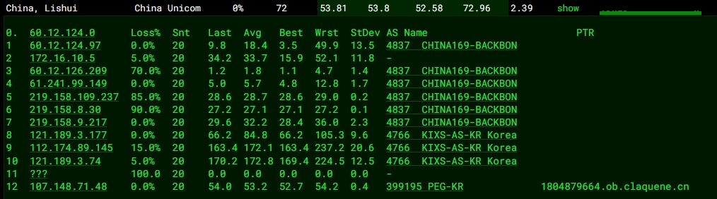 3.6 中國聯(lián)通回程 MTR 測試 如下圖