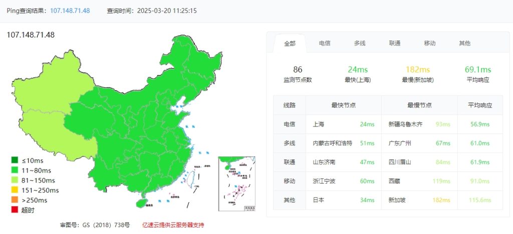 3.3 itdog 國內多點聯(lián)通 Ping 如下圖