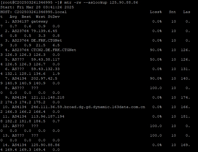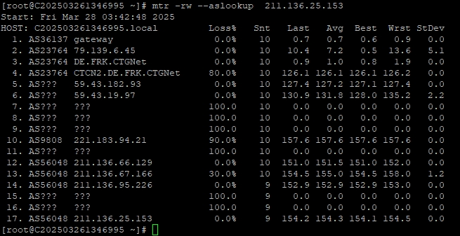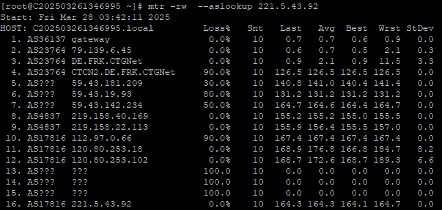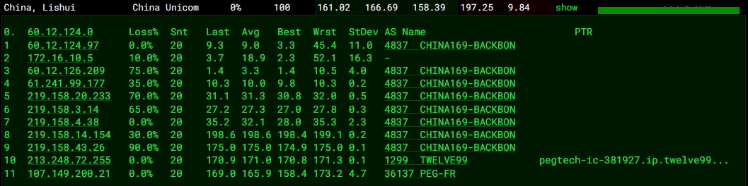 3.6 中國聯(lián)通回程 MTR 測試 如下圖