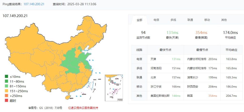 3.4 itdog 國內(nèi)多點移動 Ping 如下圖