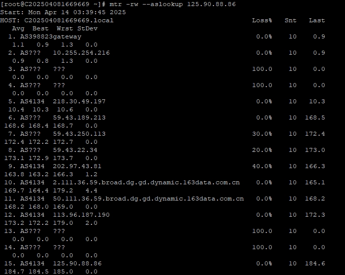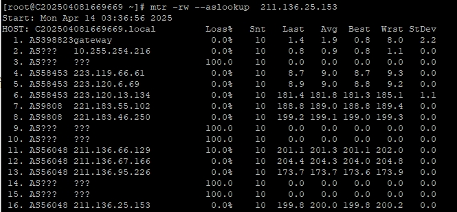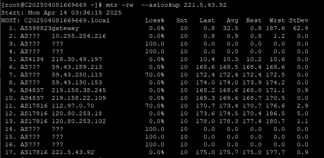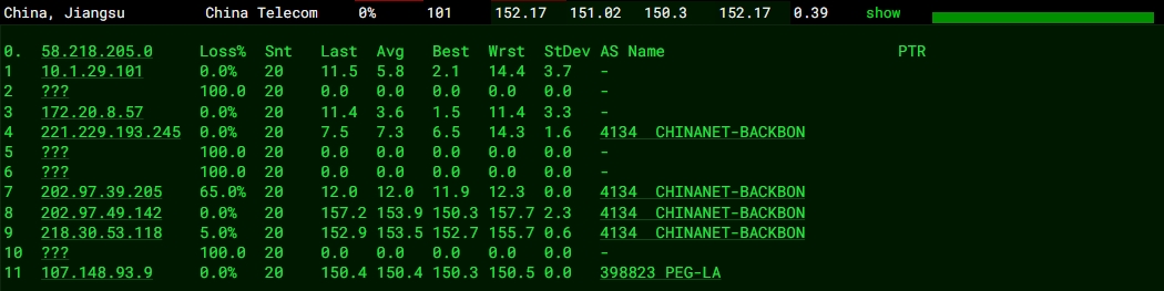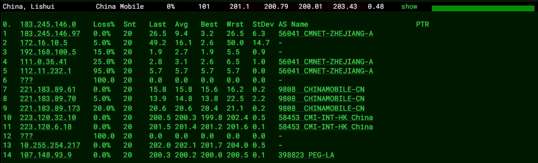 3.3.1 ping.pe 國內聯通節點去程 MTR 如下圖