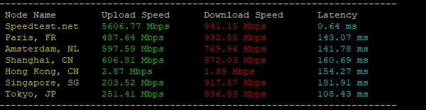 全球及國內電信、聯通、移動的上傳和下載速度測試。