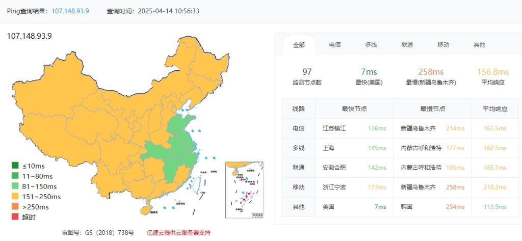 3.3 itdog 國內多點聯通 Ping 如下圖