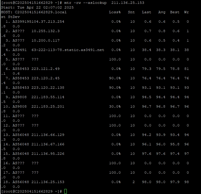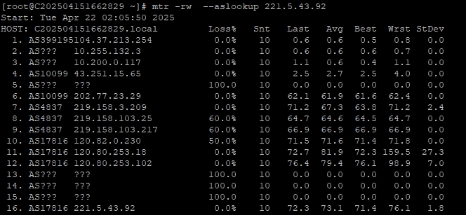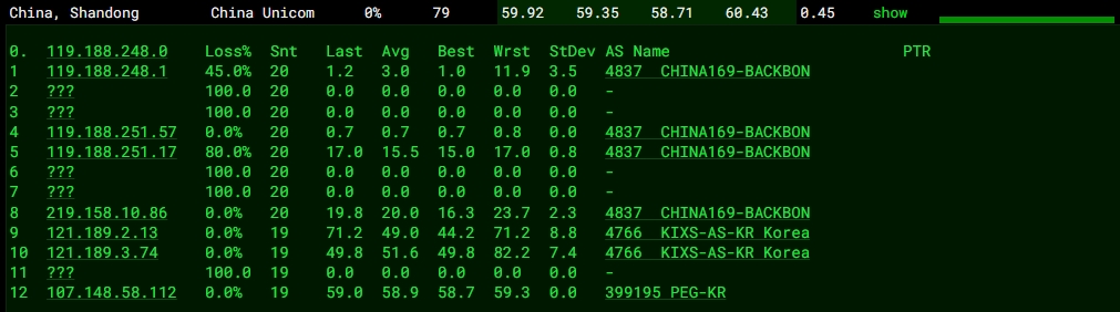 3.6 中國聯通回程 MTR 測試 如下圖