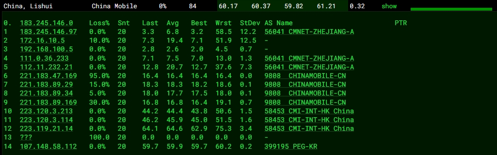 3.7 中國移動回程 MTR 測試截圖