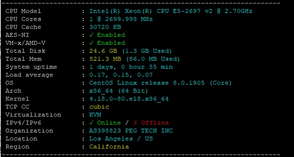 登錄服務器后,查看當前服務器的基本信息,如下圖