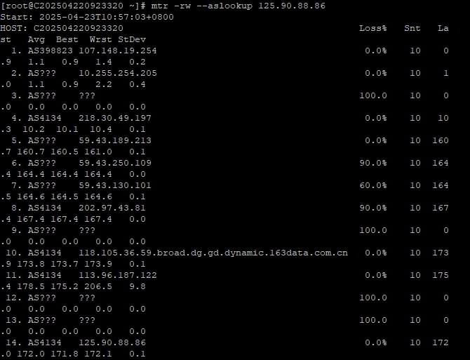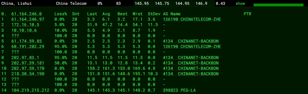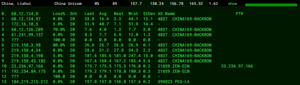 3.3.1 ping.pe 國內聯通節點去程 MTR 如下圖
