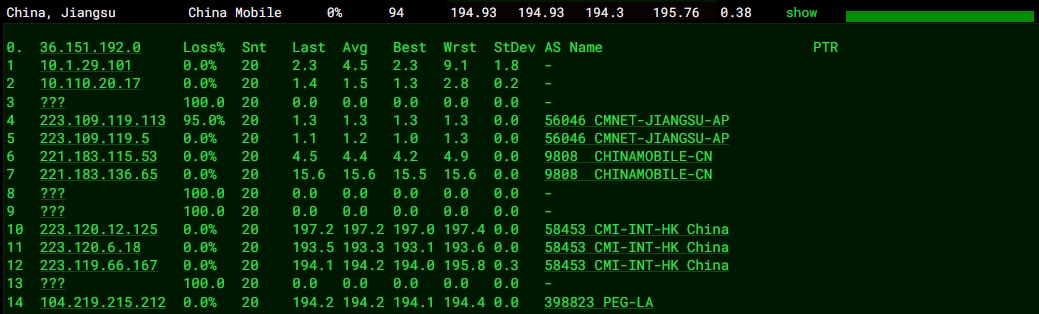 3.4.1 ping.pe 國內移動節點去程 MTR如下圖