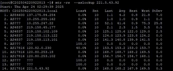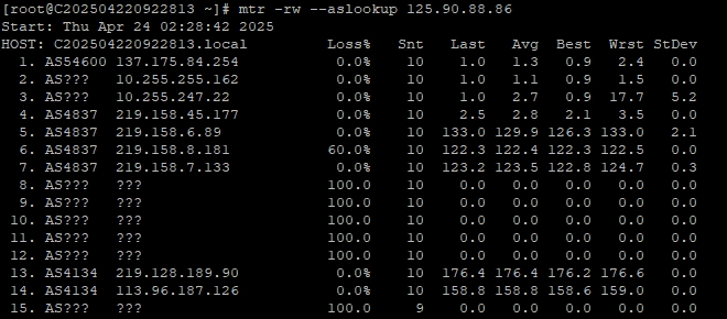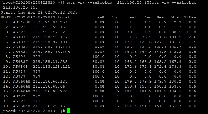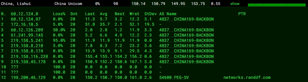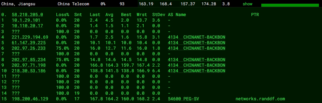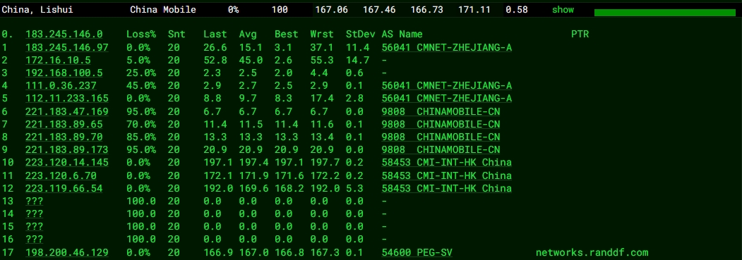 3.3.1 ping.pe 國內聯通節點去程 MTR 如下圖