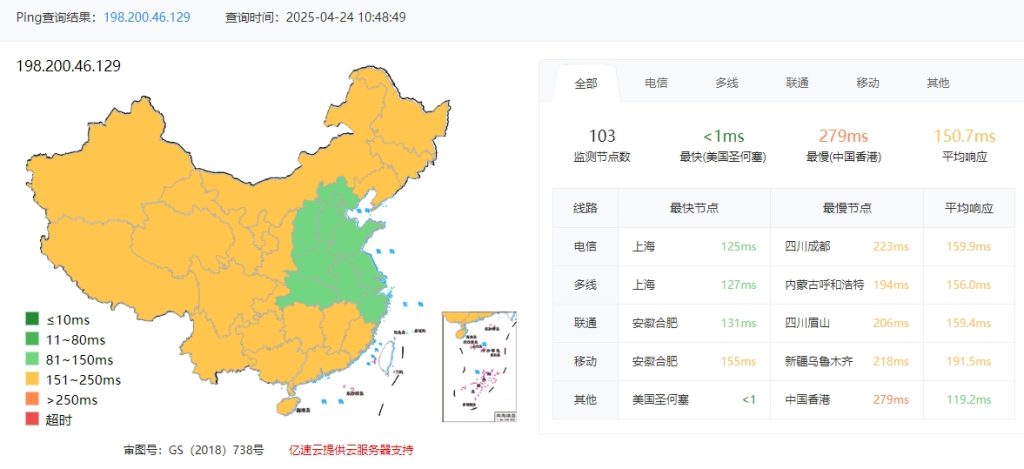 3.3 itdog 國內多點聯通 Ping 如下圖