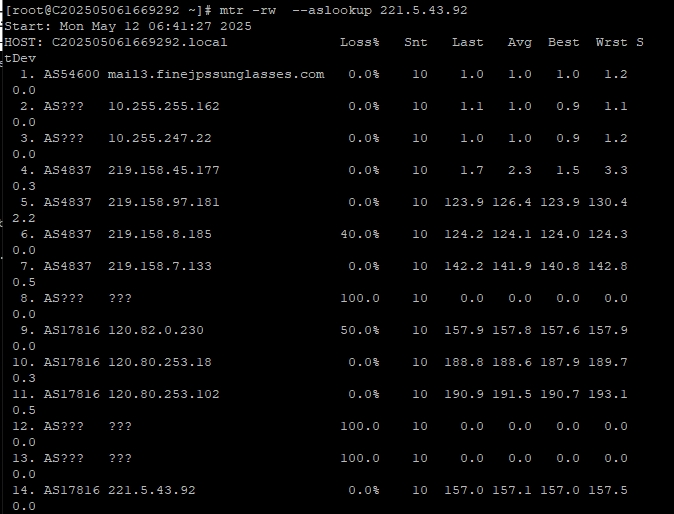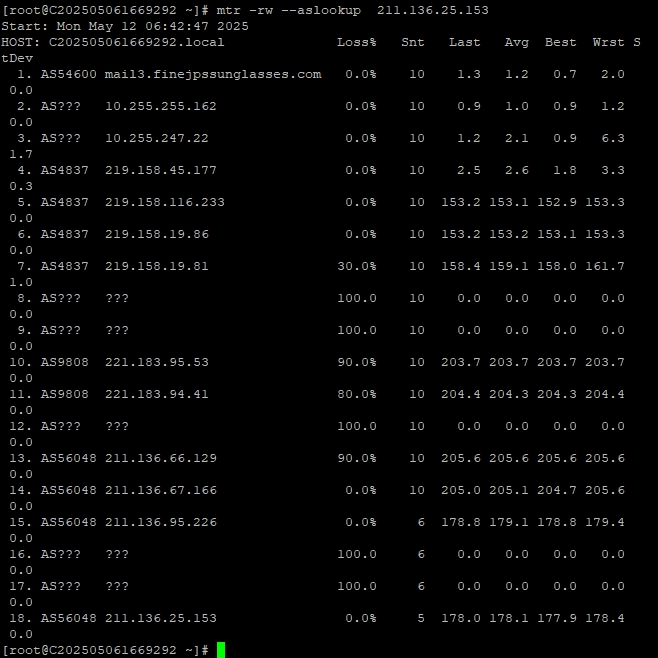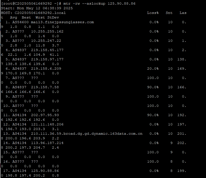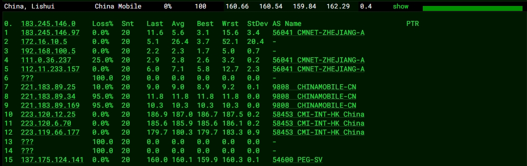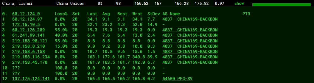 3.6 中國聯通回程 MTR 測試 如下圖