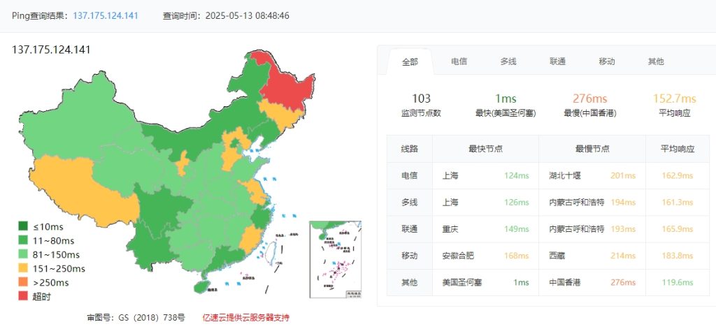 3.3 itdog 國內多點聯通 Ping 如下圖