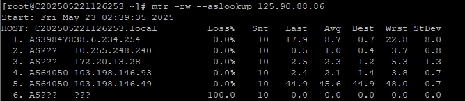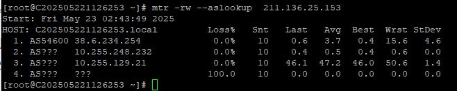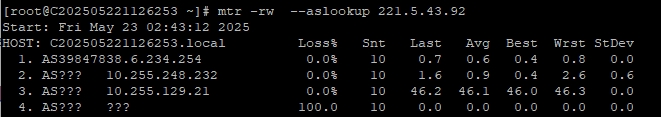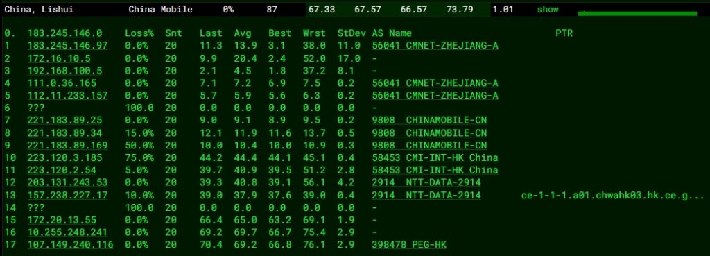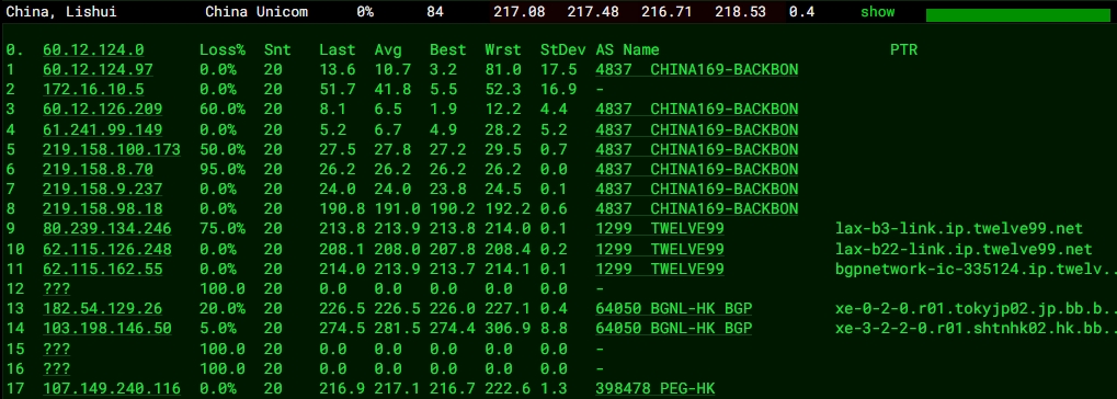 3.6 中國聯通回程 MTR 測試 如下圖