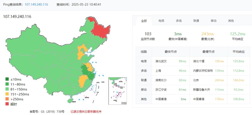 3.3 itdog 國內多點聯通 Ping 如下圖