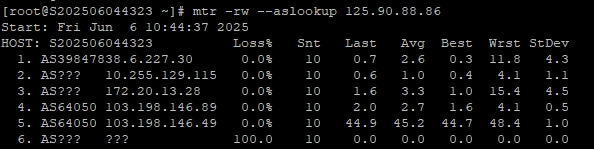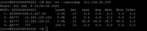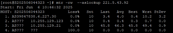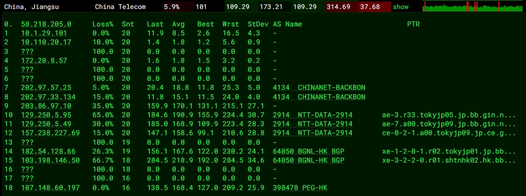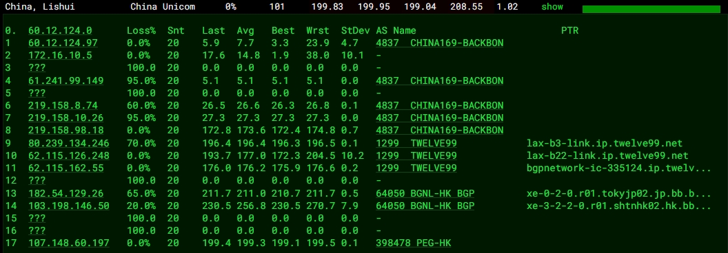 3.3.1 ping.pe 國內聯通節點去程 MTR 如下圖