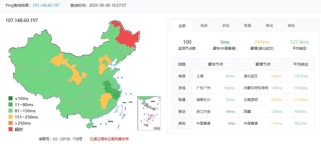 3.3 itdog 國內多點聯通 Ping 如下圖