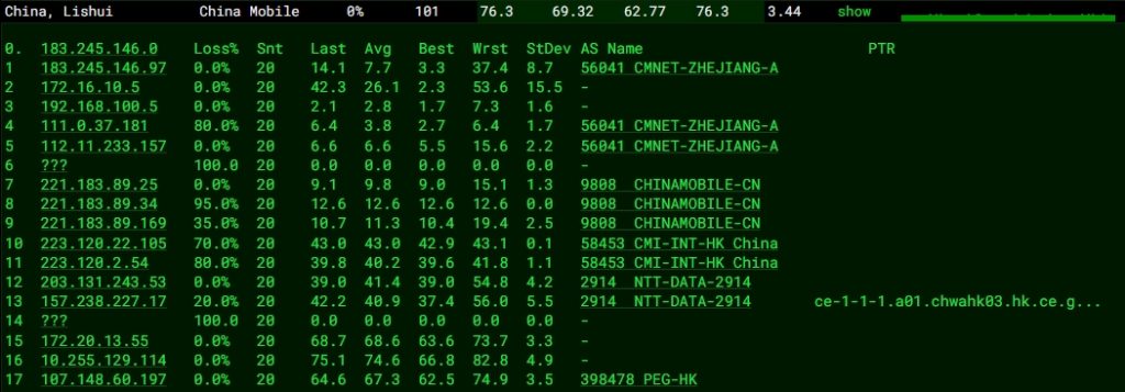 3.4.1 ping.pe 國內移動節點去程 MTR如下圖
