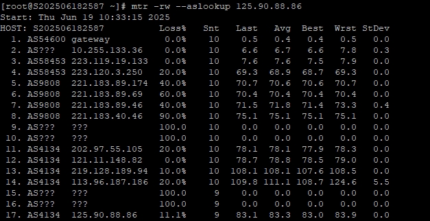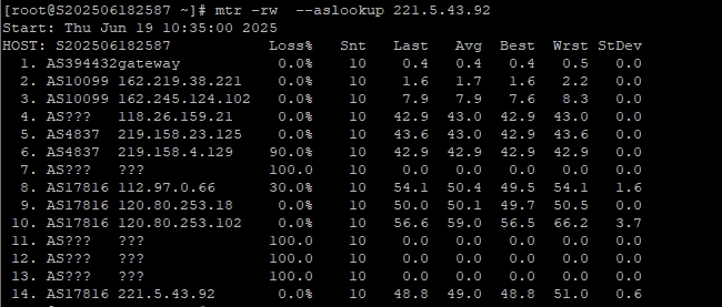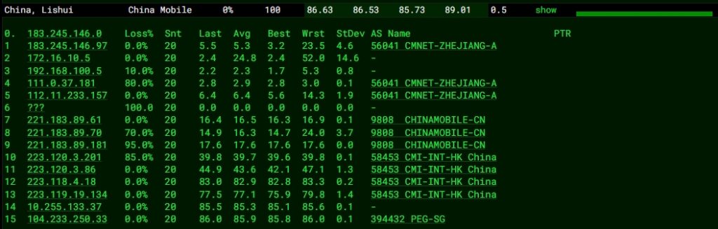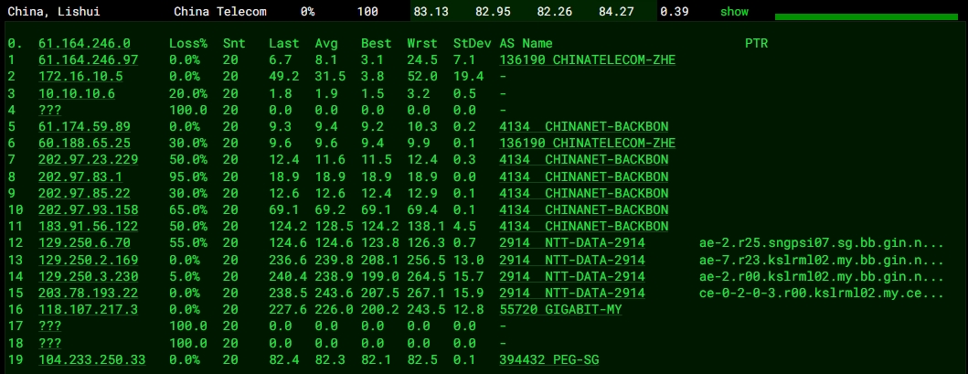 3.5 中國(guó)電信回程 MTR 測(cè)試 如下圖