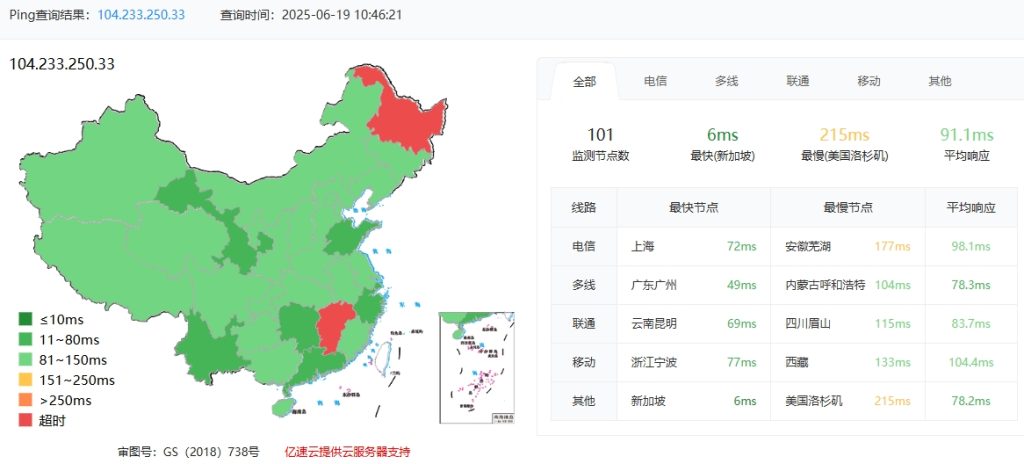 3.3 itdog 國(guó)內(nèi)多點(diǎn)聯(lián)通 Ping 如下圖